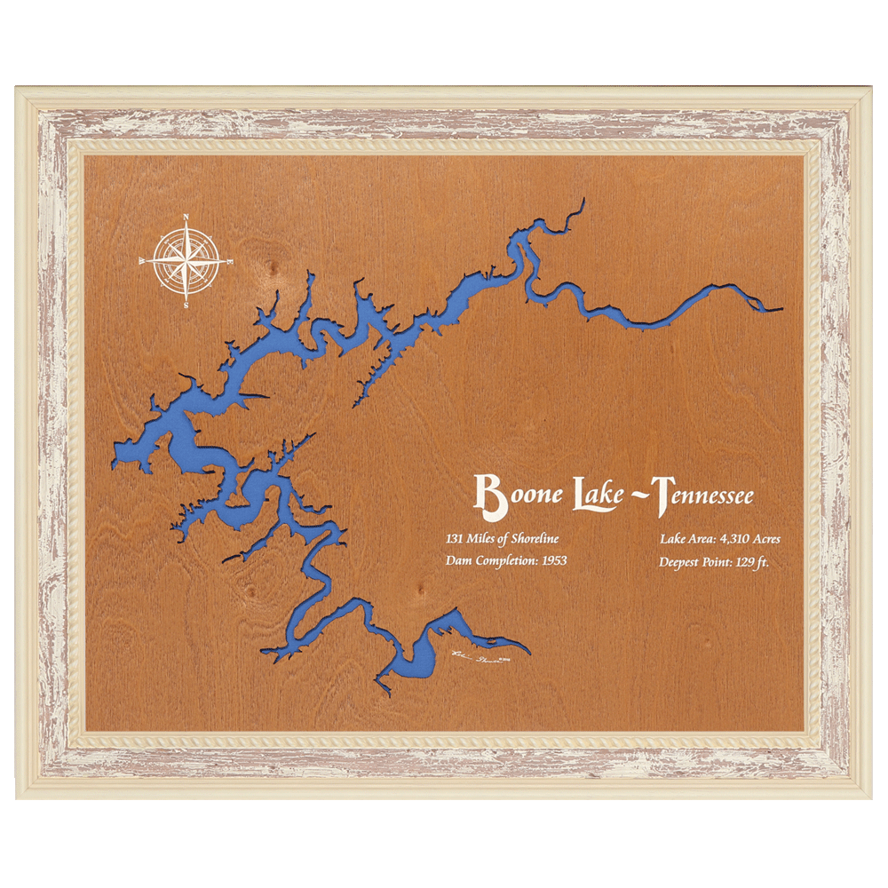 Boone Lake, Tennessee Stained Wood and Distressed White Frame Lake
