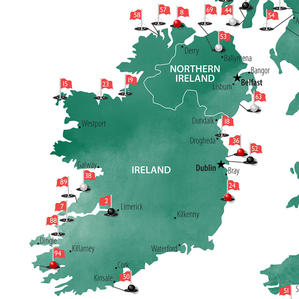 Top Golf Courses in the UK and Ireland Push Pin Map | Canvas Map