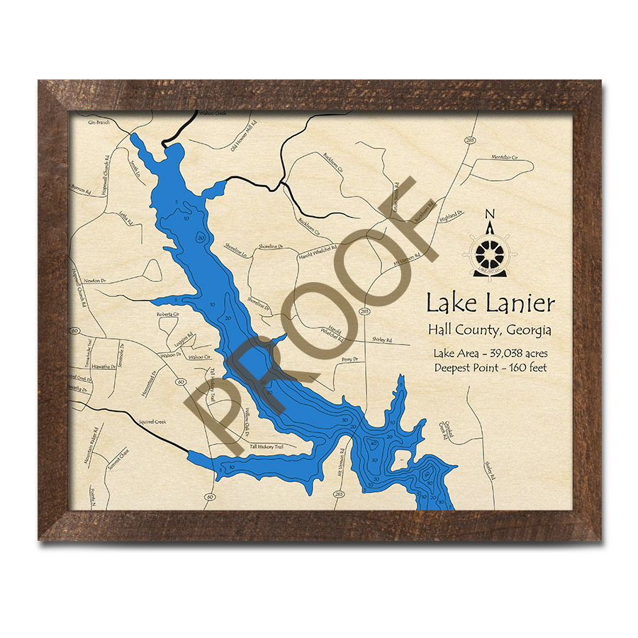 Lake Lanier (From HWY 283 Bridge to Wahoo Creek) 3D Wood Map, Georgia