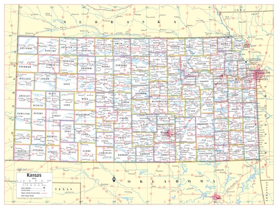 Kansas State Wall Map Large Print Poster 32×24 Etsy Norway