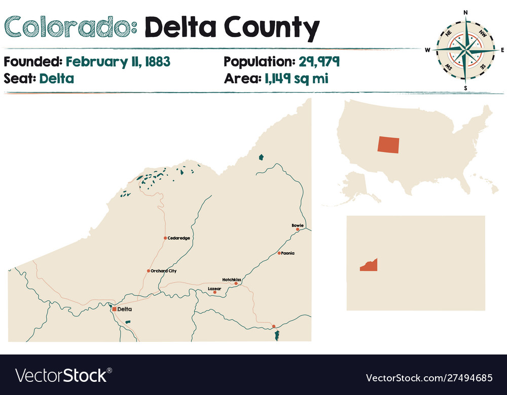 Map delta county in colorado Royalty Free Vector Image