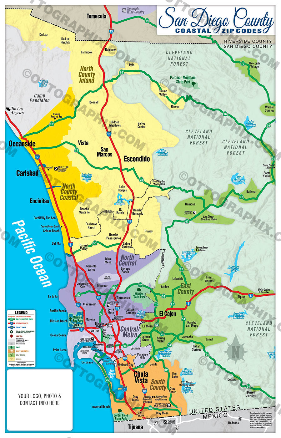 San Diego County Map COASTAL (no Zip Codes) โ Otto Maps