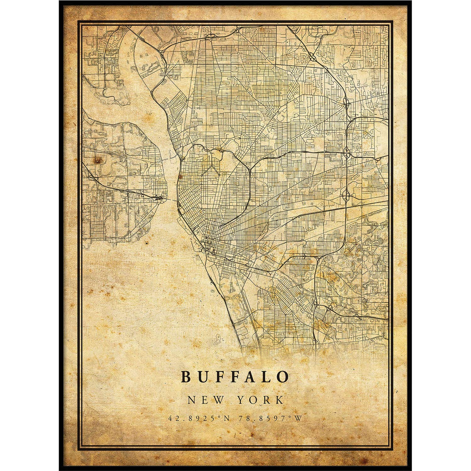 Amazon. Buffalo map Vintage Style Poster Print | Old City