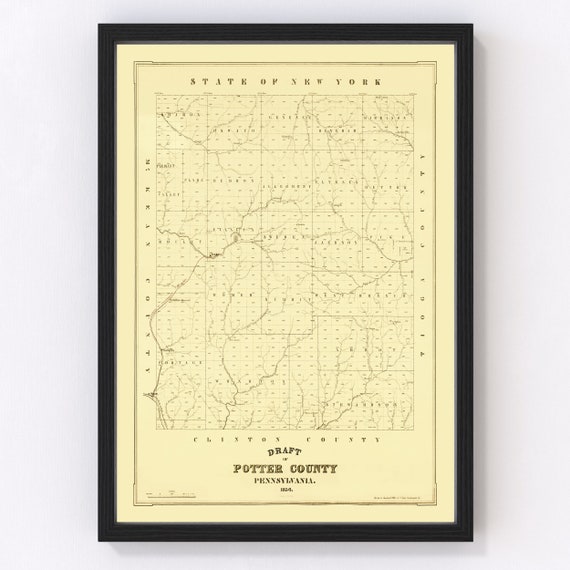 Potter County PA Map 1856 Old Map of Amarillo Pennsylvania Art